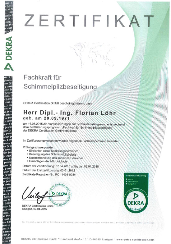 Fachkraft für Schimmelpilzsanierung